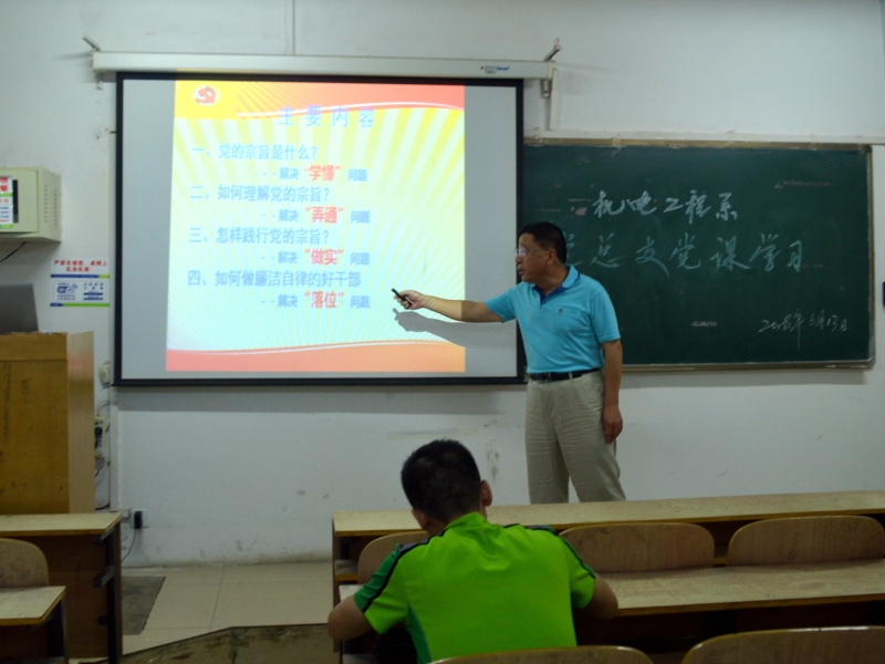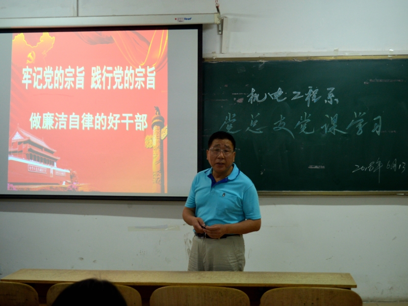 6月13日晚,机电工程系党总支邀请公司党委副书记、纪委书记杨云峰教授在临渭校区B107教室讲党课。机电系全体党员教师及员工党员参加了党课学习。