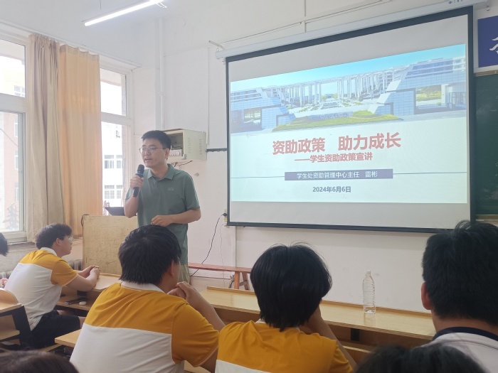 为进一步让员工了解资助政策,切实做好资助工作,6月6日下午,bat365官网平台在B209教室召开资助政策宣讲会,特邀员工处资助管理中心主任雷彬老师为同学们讲解。