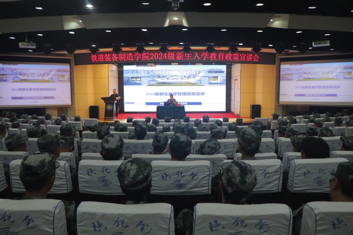 会议第一项由教务处张金坡老师进行2024级新生教学管理政策宣讲。会上张老师向同学们介绍了陕铁院高质量发展的过程、学校的校训校风、学校的优秀毕业生优秀员工及学校所拥有的学院、专业、设施,并对同学们关心的就业情况进行了详细讲解。张老师还向新生们介绍了教务处办事指南、学籍管理制度、岗位实习办理条件、考试忘记作弊处理、员工信息修改、技能大赛、职业等级认定、社会实践等和同学们在学校中息息相关的规章制度。并对新生们接下来的老员工活提出了几点建议,向同学们送出了真挚的祝福。