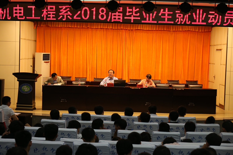 5月1日晚上8点,机电工程系在临渭校区学术报告厅召开了2018届毕业生就业动员大会,出席本次会议的领导有就业处处长王庆东、机电工程系党总支书记刘艳明、办公室副主任王力。在机电系办公室副主任王力老师的主持下,就业指导处王庆东处长为2018届毕业生进行了就业动员。