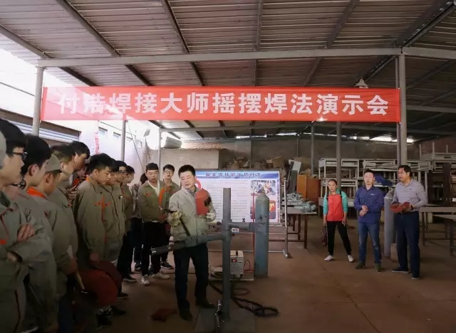 下午,焊接大师付浩在金工实训基地演示了拿手绝活摇摆焊法。公司党委书记王晖、机电工程系办公室主任何冰及机电系部分老师、焊接专业全体同学一同观摩学习。